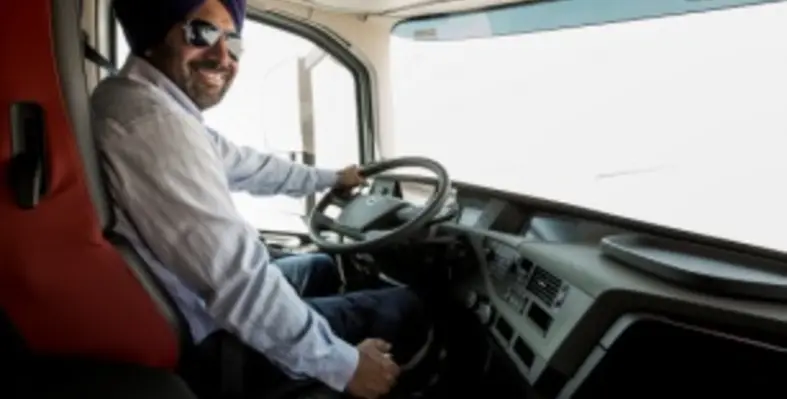 Truck driver Lehmber Singh has been driving I-Shift-equipped trucks in the UAE for two years. (Image source: Volvo)